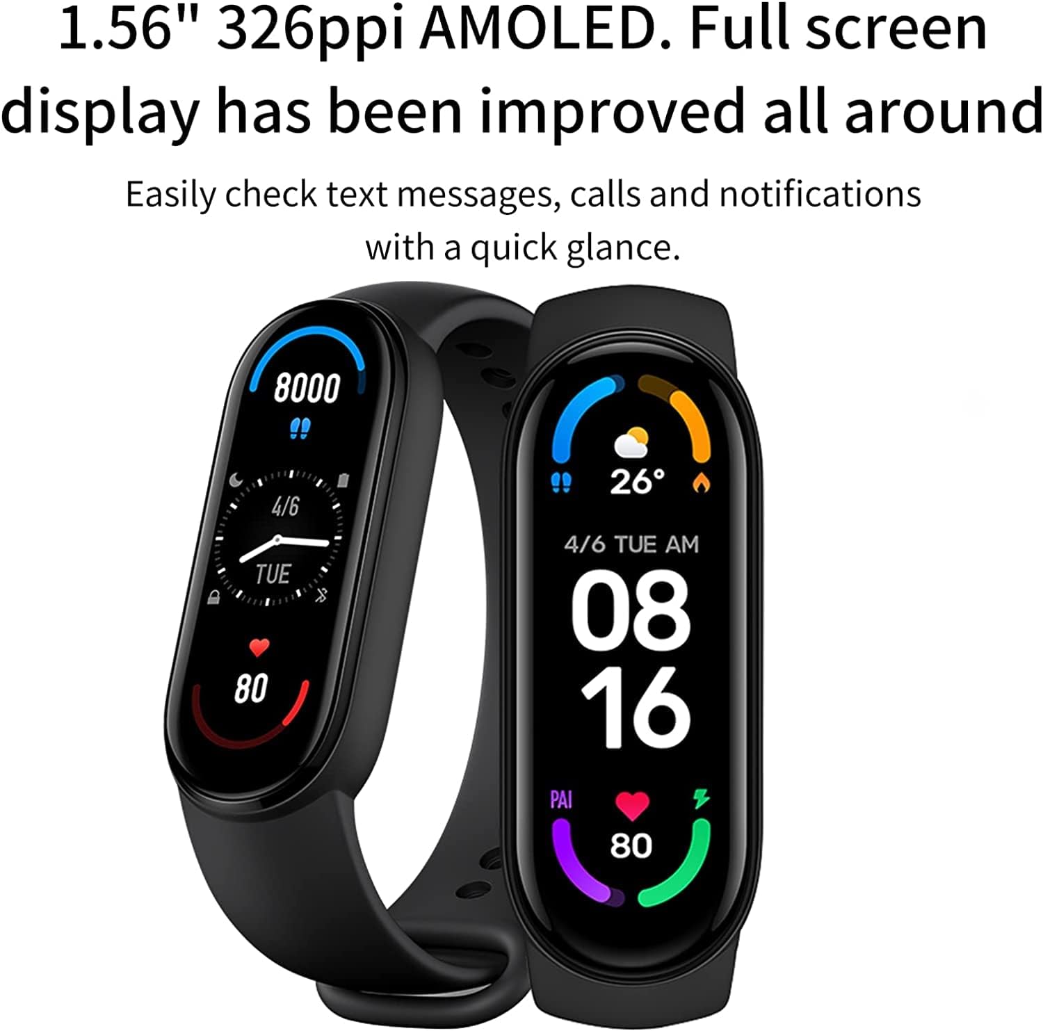 Xiaomi Smart Band 6 Global Version Activity Tracker Mi Smart Sports Armband, Herzfrequenz und Blutsauerstofferkennung, 5 ATM wasserdicht, 30 Sportmodi, Schwarz