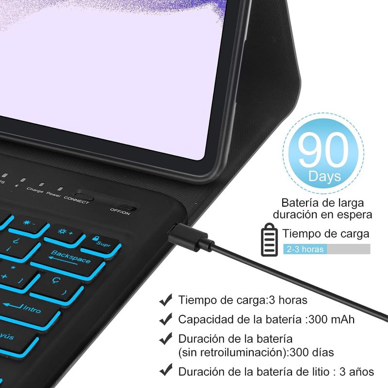 SENGBIRCH Funda Teclado para tablet Samsung Galaxy Tab S8+S8 Plus 2022 /S7 FE 2021 /S7+ S7 Plus 12,4 Pulgadas 2020,Teclado Bluetooth 7 Colores Retroiluminada Español Ñ con Cubierta Tipo Folio de PU,ng
